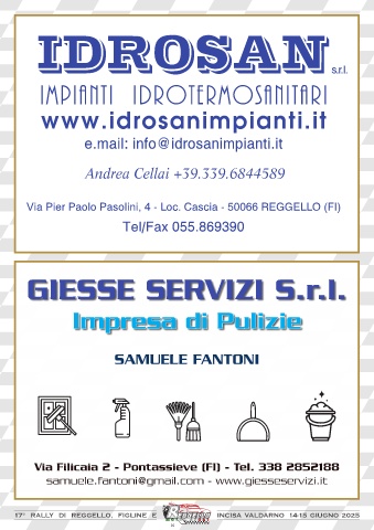 GIESSE SERVIZI S.r.l. Impresa di Pulizie SAMUELE FANTONI Via Filicaia 2 - Pontassieve (FI) - Tel. 338 2852188 samuele.fantoni@gmail.com - www.giesseservizi.it 17° RALLY DI REGGELLO, FIGLINE E INCISA VALDARNO 14-15 GIUGNO 2025 26