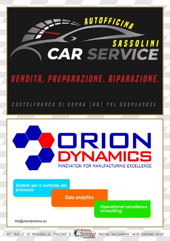 orion Innovation for manufacturing excellence dynamics Sistemi per il controllo del processo Data analytics Operational excellence consulting info@oriondynamics.eu 17° RALLY DI REGGELLO, FIGLINE E INCISA VALDARNO 14-15 GIUGNO 2025 35