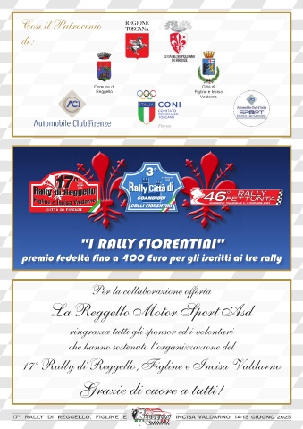 17° RALLY DI REGGELLO, FIGLINE E INCISA VALDARNO 14-15 GIUGNO 2025
