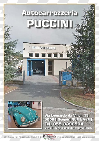 Autocarrozzeria PUCCINI Via Leonardo da Vinci, 13 50068 Scopeti RUFINA (FI) Tel. 055 8398504 e-mail: carpuccinirufina@gmail.com 17° RALLY DI REGGELLO, FIGLINE E INCISA VALDARNO 14-15 GIUGNO 2025 67