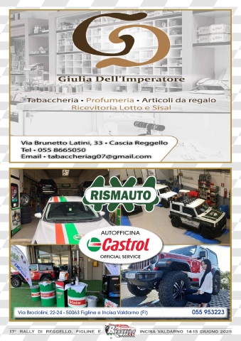 AUTOFFICINA OFFICIAL SERVICE Via Brodolini, 22-24 - 50063 Figline e Incisa Valdarno (FI) 055 953223 17° RALLY DI REGGELLO, FIGLINE E INCISA VALDARNO 14-15 GIUGNO 2025 85