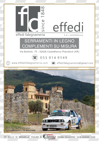 Via Botriolo, 75 - 52026 Castelfranco Piandiscò (AR) Vincitori 16° Rally Storico B. GUARDUCCI - M. BAZZANI 17° RALLY DI REGGELLO, FIGLINE E INCISA VALDARNO 14-15 GIUGNO 2025 98